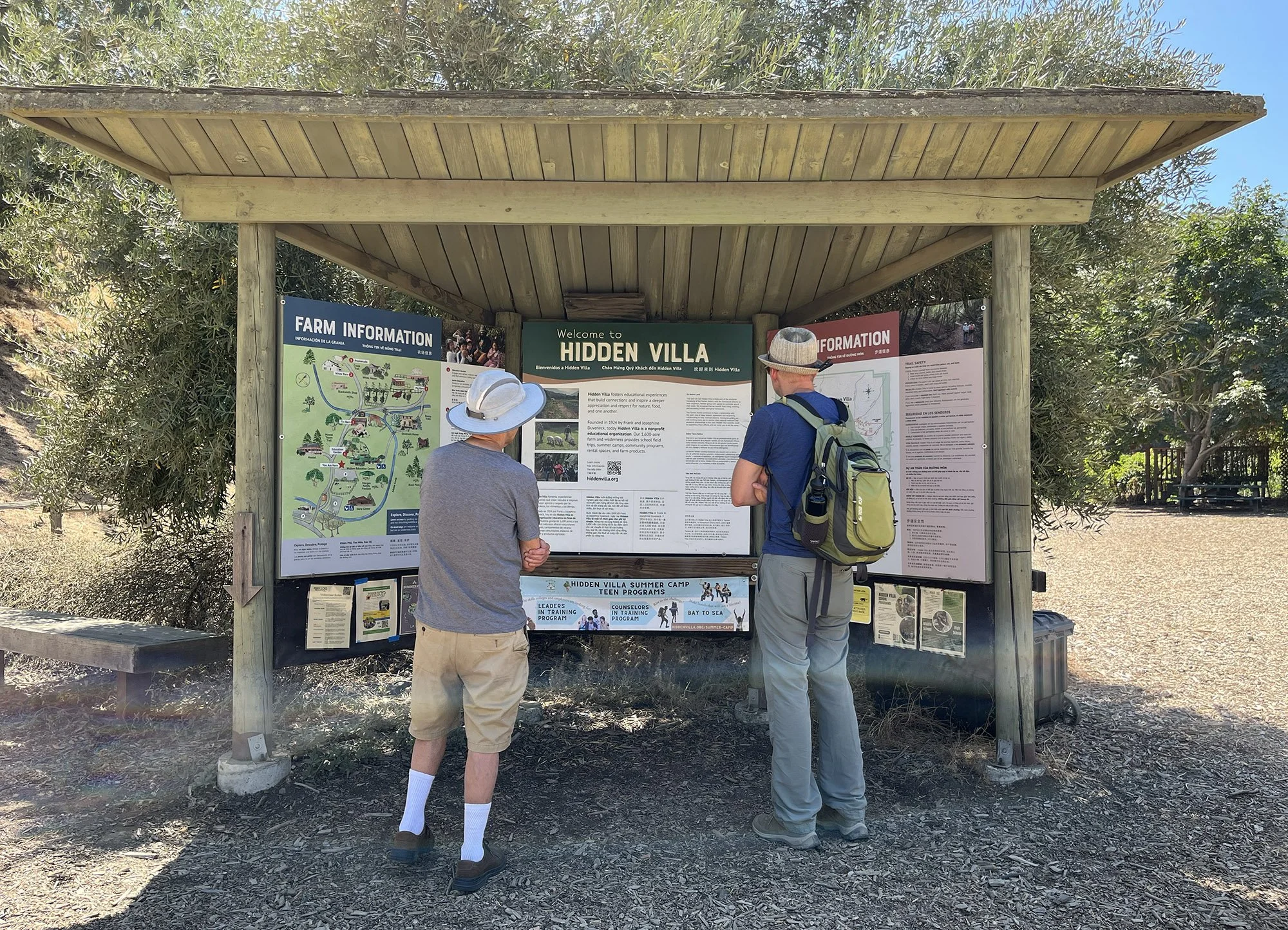 The welcome kiosk provides a quick orientation with maps of the farm and trails and gets visitors excited about what to see and do while exploring Hidden Villa.